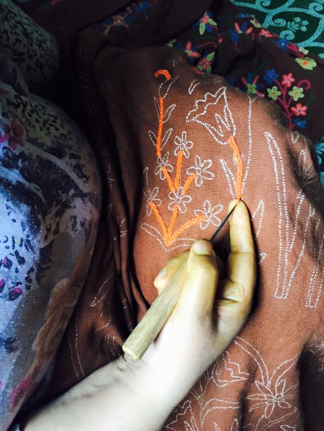 カシミールの手工芸はお母さん達が家事や育児の間にせっせと作ったものも多くあり、事情があって家の収入が少ないのを補います。