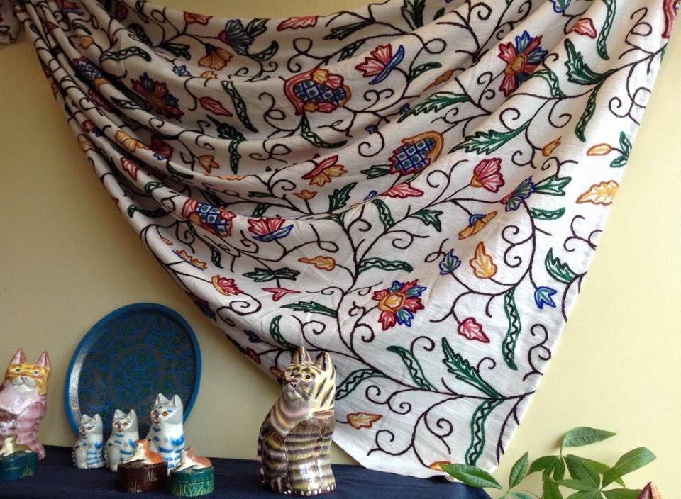 今てとて舎の店内をカシミール刺繍の布が彩っています。